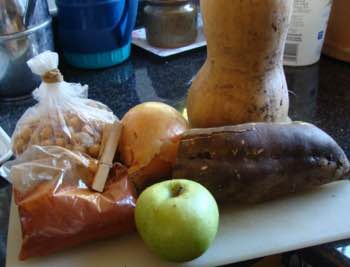 For a variation this butternut and ginger soup is very nice; instead of the spice recommended above, fry a thumb sized piece of fresh ginger with the onion, and then follow the same recipe.