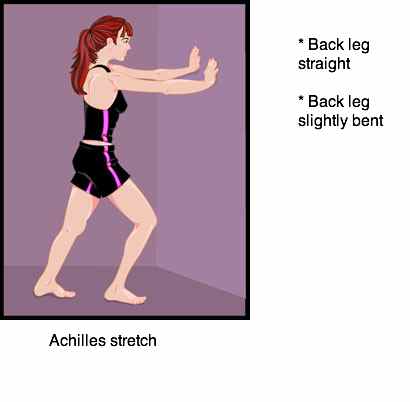 A bathrail is a certainly something to consider, at least for children and the elderly. If it saves one fall, it will have paid for itself many times over. In summary, I hope you will give some consideration to safety in your bathroom. Falls on the tiles, on the edge of the bath and against accessories are generally very painful. ExercisesAny number of injuries can happen in a fall in the bathroom, but this little achilles stretch is an alltime favourite. Research shows that people who regularly stretch their achilles tendon have much less foot and ankle pain, not matter what the source of pain.Do it first with the knee straight, and then repeat with the knee slightly bent.