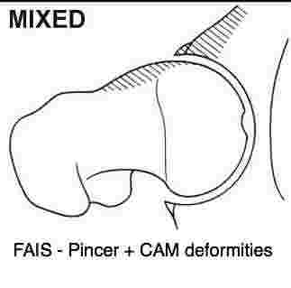 Nearly 90% of those suffering from Femoro Acetabular Impingement Syndrome have the mixed form, with both internal and external rotation limited. Only about 10% have either limited internal or external rotation.