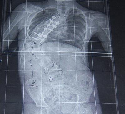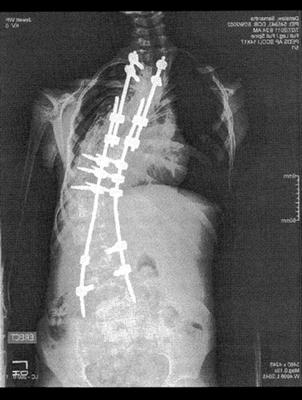 Nothing has worked and so her last surgery was to remove some of the old hardware (first pic), insert adjustable rods and to fuse most of her vertebra.