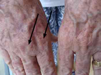 This lady fell awkwardly in a carpark falling onto the back of her hand, forcing it into flexion. Injuries of this nature happen so fast that one rarely remembers exactly what happened, particularly if there are other more painful injuries. In her case she had a nasty gash to her face that required stitching by her medical doctor.