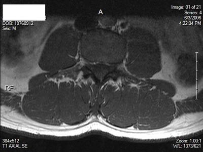 I'm 35 years old, male. Right hip pain, started as low back pain. Herniated disc L5S1, treated with ESI injections. Still have hip pain. Hurts when I flex my leg, SLR pain at about 45 degrees. My MRI and Xray are only of lumbar spine, however, do you see any abnormality of any bony or soft tissue of hip on these images? I understand it could be sciatica, which was the easiest thing they could come up with.